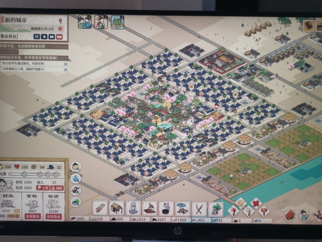 暂停把货仓都改为无需人员,供给,材料为零的全都把勾取消掉 建房子多建茅屋,农舍需要木炭因为人不够,所以先不建造农舍 我习惯把建筑工挪到工作安排的最后一个就是让闲人去建筑 等一会儿发现有闲人了,就让他们去砍树,同样的我还是把伐木人挪到了建筑工的上面,也就是工作安排的倒数第2个 在茅屋中间放一个街景 109年2月上缴200税钱,把赋税改成中等 找到茶坊,把其中一块农田换成竹子 采石厂的仓库满了,就在