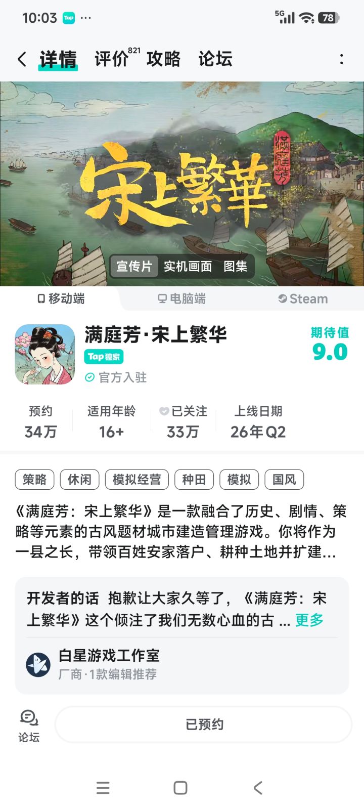 手游版本【初砚测试】即将开启!【满庭芳:宋上繁华】