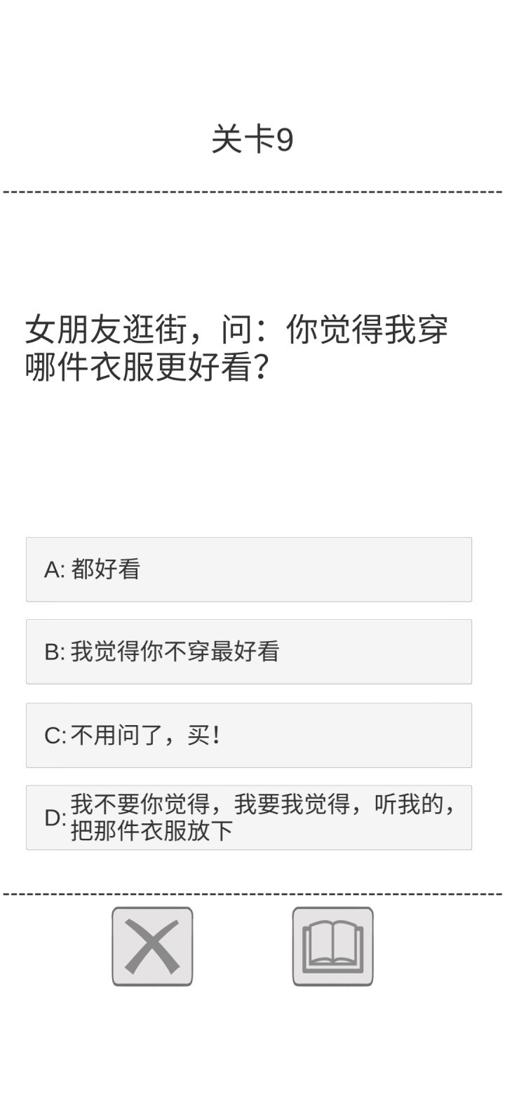 这游戏玩的我莫名其妙,这是女朋友吗?我说实话,这里面的正确答案我一女生觉得花里胡哨,所有的事情都围绕着钱,不管什么,都是买买买,有些不太理智,而且有些无脑买了。正常人谈恋爱不是需要关心爱护和关注度吗?难道关心爱护关注度就必须围绕着钱吗?例如:女朋友生日,一份最贵的套餐和一份女朋友感动的套餐里,只有最贵的套餐是正确答案,但是这两个不论哪个,不都是爱人的一片心意吗?什么时候连心意都需要去用金钱衡量了呢