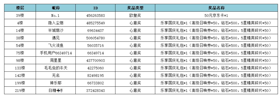 本活动获奖名单如下: 【领奖须知】 1、中奖的玩家将个人主页截图及带有个人留言楼层的截图发送到QQ:3164318020(梅林) 2、请在5个工作日内领取,逾期则视为放弃