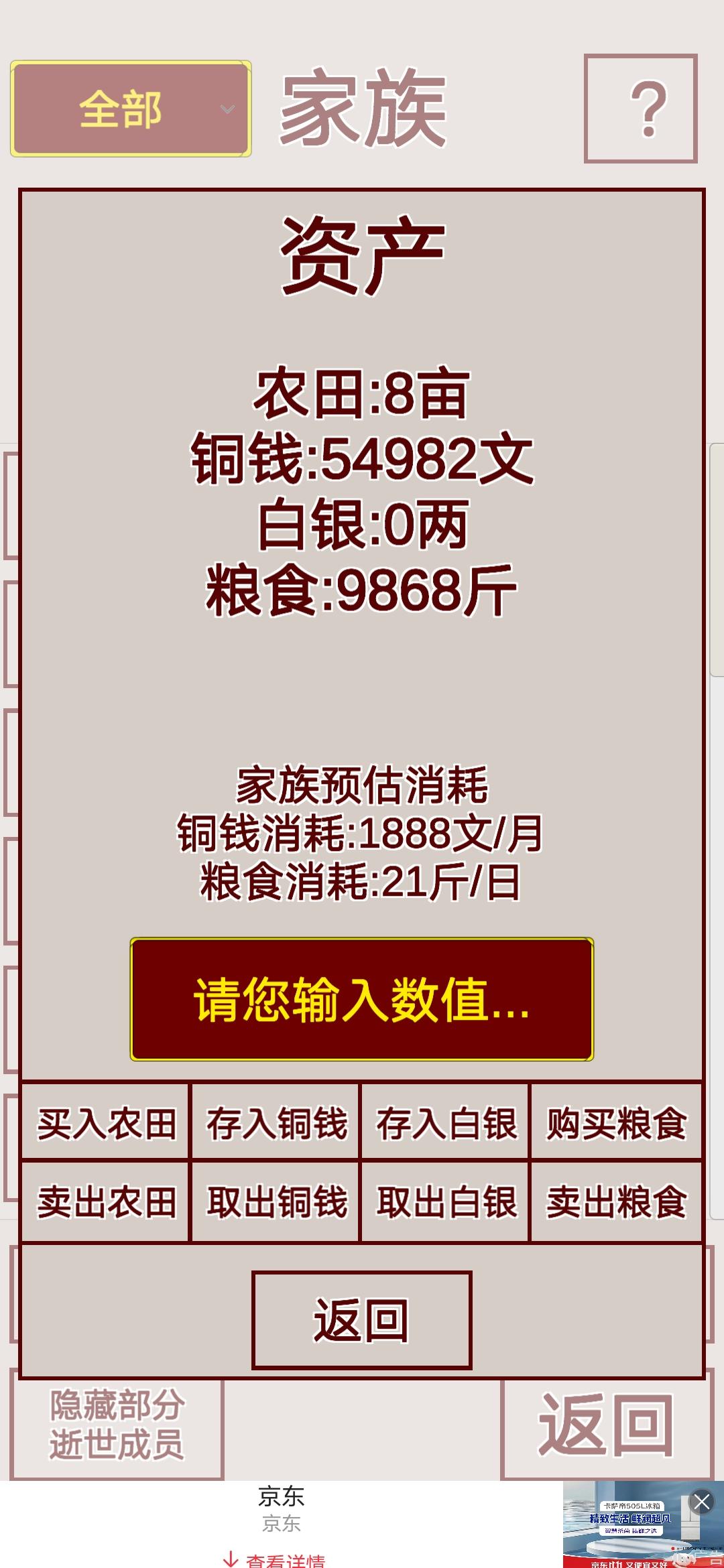 游戏最主要的赚钱方式就是往钱庄里存钱的功能,钱庄存钱最终目标一定是选高风险高收益90天(180-360天收益都是一样的),钱庄可以利用金钱积少成多的方式滚雪球(第一代家主开局务必把爵位刷最高官职最高,一个月差不多一万铜钱,第二代官职刷不刷无所谓)攒到20w开始存钱钱庄(高收益高风险)一年可以存3次,日复一日重复重复钱庄存钱操作,现实生活里刷一个钟左右(熬死了嘉庆熬死了万历,后面称帝不怕没钱),最重要的要记得等到了可以一次存钱99亿高风险高收益90天得到结算一次钱庄收益5亿一笔时,尽量在钱庄刷够10笔99亿高收益高风险存款,慢慢的一次收益达到50亿一次时多刷几次,下一步可以用作置办田产了(我的是50w亩管家管理),家族后代衣食无忧后代家主躺着刷年份从明末到清初会很爽。起义做帝王家,还不如做大明富商舒服,到时候如果有更新大航海时代玩法可以到海外搞万邦臣服,真香(好像记得开局选项选了爷爷是跟明太祖征战的将军,爸爸是富商,咱也不是吴三桂,就认大明做老东家了,所以我等到明灭了清上位再看心情推翻清揭竿起义)
