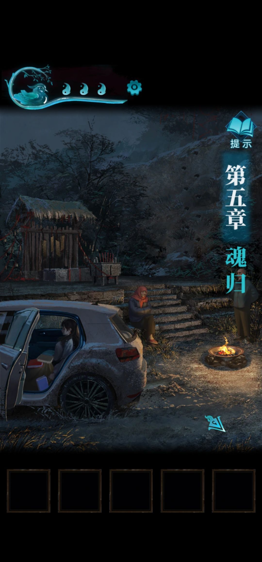 方便不想看广告的朋友 第四章 先换成女孩子去下五子棋,之后获得铜像,回到庙前面把铜像塞进去。 再换成男人进去,进去先看书,书是好东西,拿出手机看房梁上的北斗七星闪烁规律,点亮之后根据男人看到的书把字改好,腾空尊天火旨离,然后妹子就能进来了。 妹子进来还是先看书,再拿剪刀把地毯剪了,男人再把地毯下面的东西捡走,女孩子看福字的位置,看小人指的字,得出密码病生老生嫁,男人打开下面的柜子得到瓷勺。 出门,