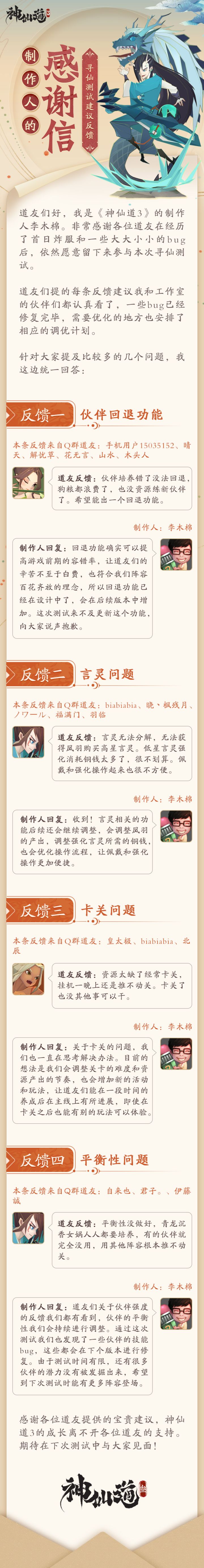 短暂的离别是为了将来以更好的面貌重逢。非常感谢各位道友在测试期间提供的建议和反馈,我们会在后续开发过程中进行重点优化!