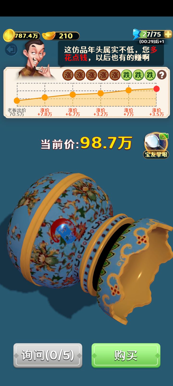 开局愣是没想到还能买到赝品 古董鉴宝,有亏有赚,瑕疵刮擦,有涨有跌。这位宝友您掌眼~亲手鉴宝,你能在地摊捞到真货吗? ⬇️⬇️游戏点击即玩⬇️⬇️⬇️#我的游戏日记Vol.3#游戏实况#我的游戏日记#休闲游戏#好玩的游戏#手机游戏