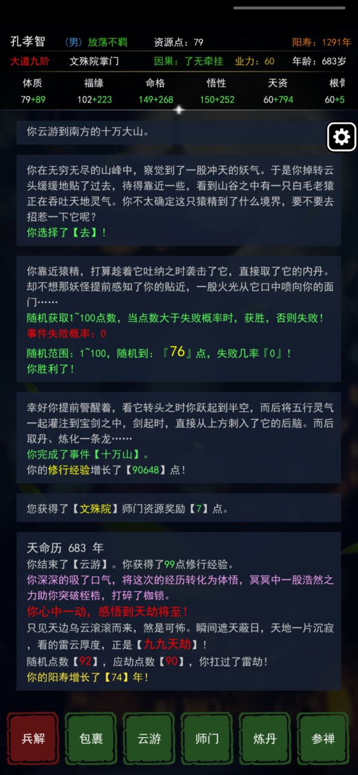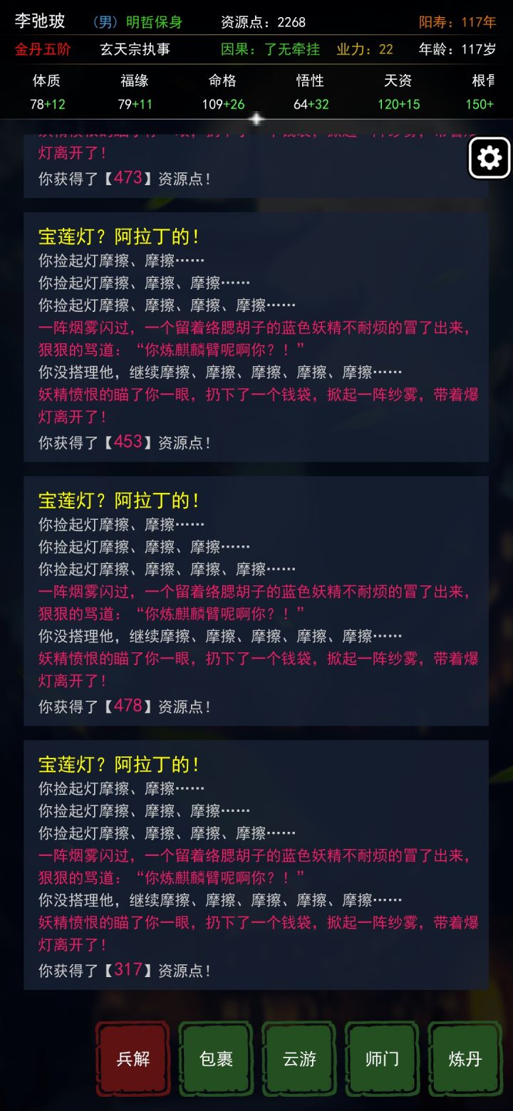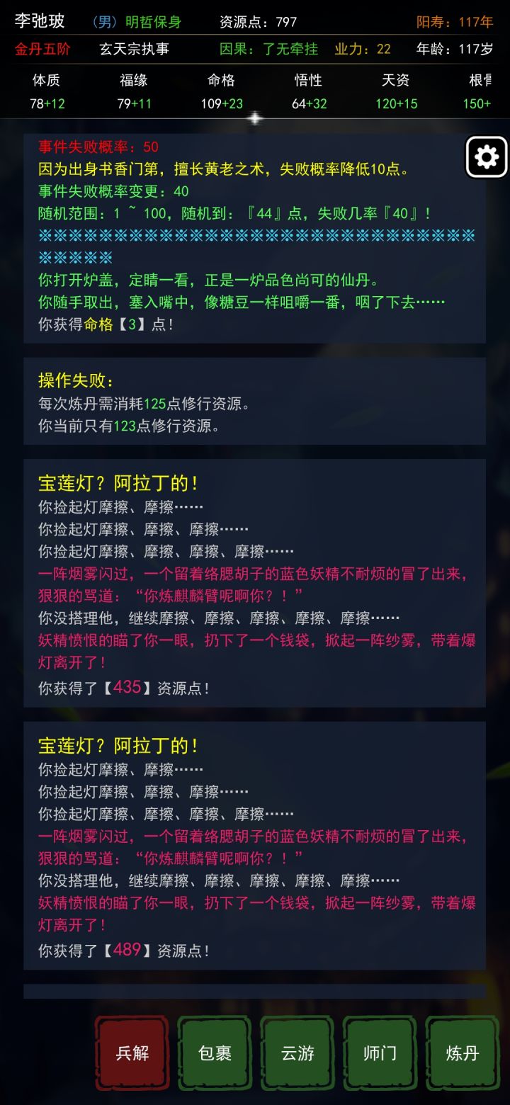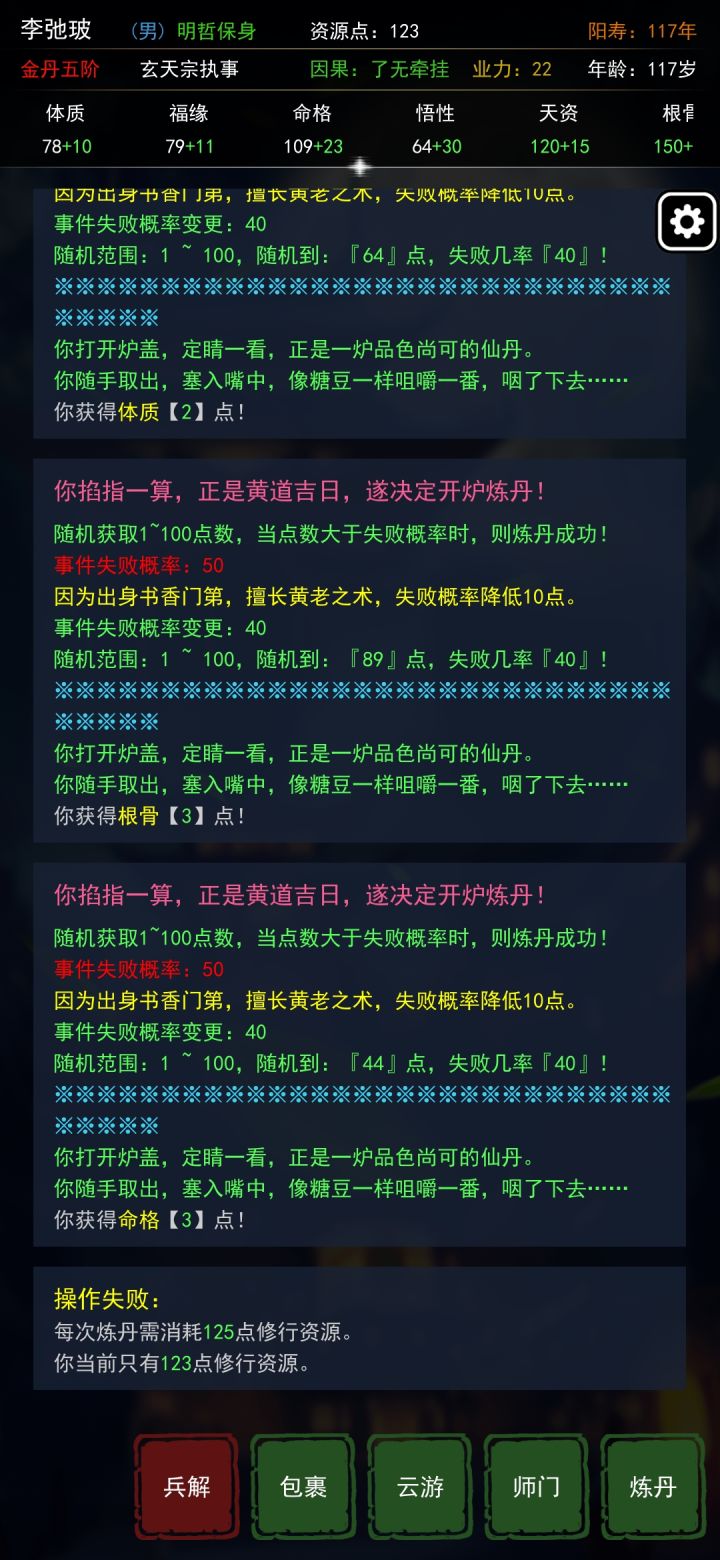 唉,看了半个多小时都不想怎么评论玩了4次了,最高才金丹7