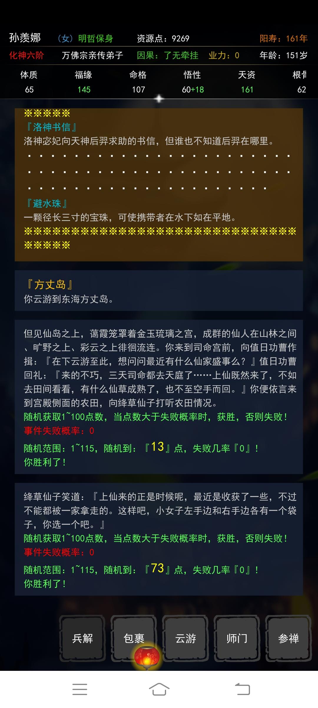 只要能弄到棋枰事件,就可以降低其他事件的出现概率。但是也会降低修为获取的效率。如图所示,加了这么多命格,有什么用。。。棋枰把冰岛,不周山,方丈山等事件都挤没了,虽然有助于通关,但是很难。