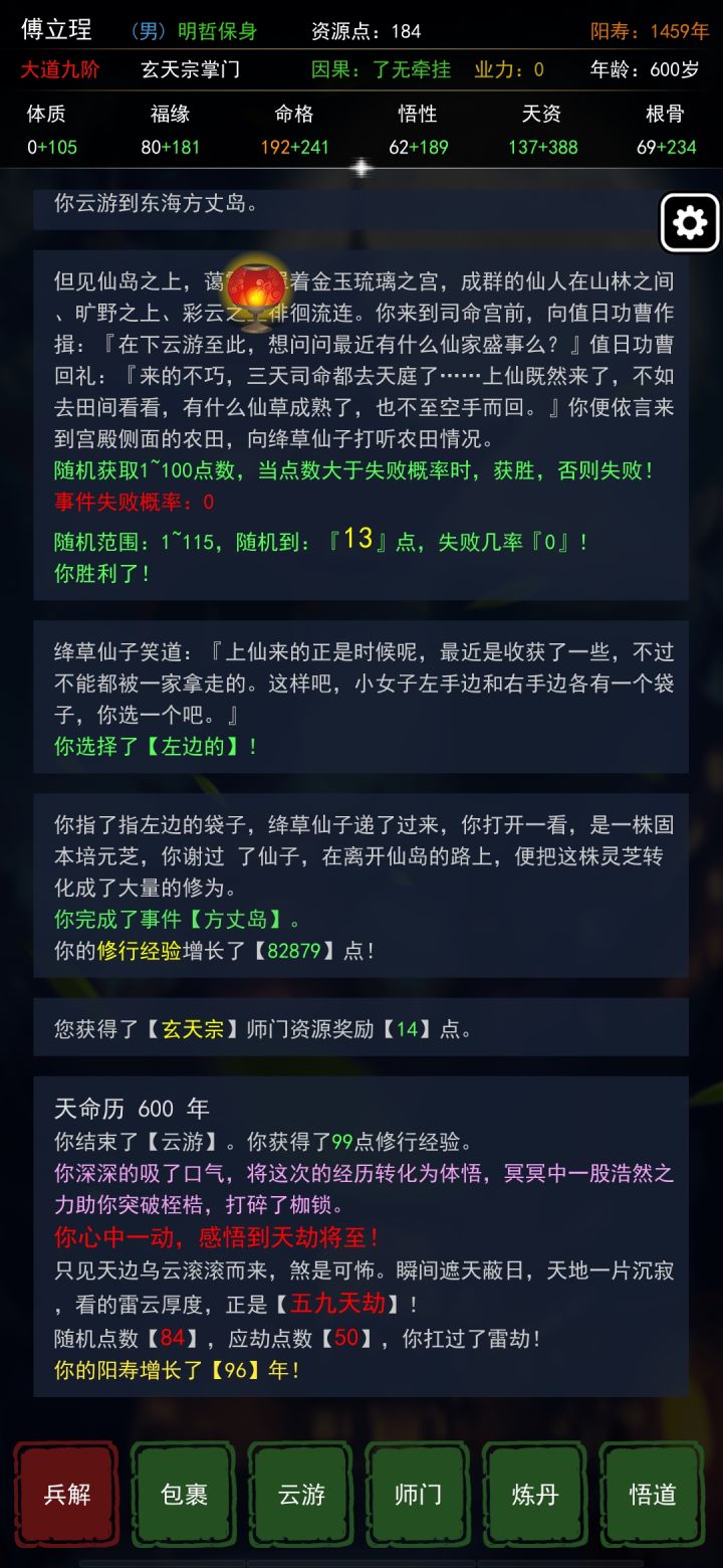 只要能弄到棋枰事件,就可以降低其他事件的出现概率。但是也会降低修为获取的效率。如图所示,加了这么多命格,有什么用。。。棋枰把冰岛,不周山,方丈山等事件都挤没了,虽然有助于通关,但是很难。
