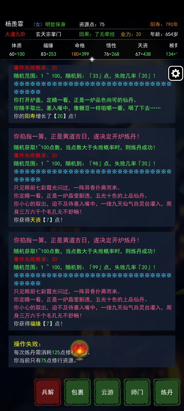 只要能弄到棋枰事件,就可以降低其他事件的出现概率。但是也会降低修为获取的效率。如图所示,加了这么多命格,有什么用。。。棋枰把冰岛,不周山,方丈山等事件都挤没了,虽然有助于通关,但是很难。