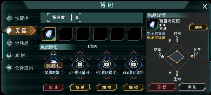 前期任务打蛤蟆,会获得一个新手灵蛋,需要点击头像-活体意识里,将它孵化,孵化完成后取出来。在活体意识界面将孵化后的灵兽装配到空槽里增加战力,野外打怪时有时也会掉落怪物灵蛋,别忘了一起孵化出来装配在其他空槽里,如果想要高级灵蛋就得利用活动送的召唤卡去十连抽了。在活体意识界面右边点击升级,可以用灵性升级液或蛋壳增加灵兽经验,提升等级增加属性。点击进化,可以用强化剂提高灵兽的成长值,强化剂在商店有