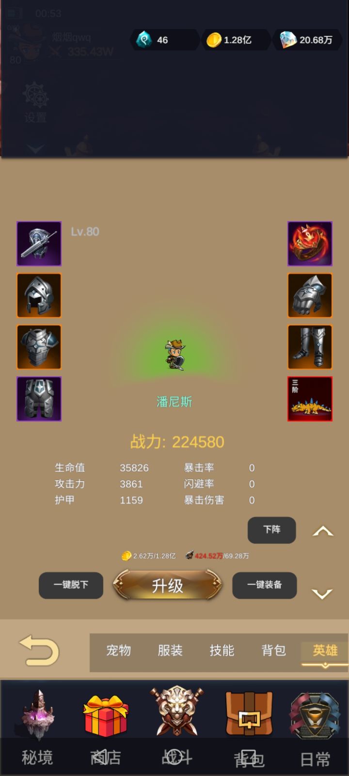 首先先升级一个英雄选战士等级到70刷日常副本装备!伤害加成配合经验卷推图和打经验副本!这样能让经验最大化!秘境先不用着急打,后面打高层出货几率更高一些!秘境出皮肤卡还有魂晶、时装升级碎片!80级之后可以适当打80挑战出随机碎片合成书必备!书合成方法在背包合成里面!然后再到秘境打龙魂!皮肤卡61首页服装使用!钻石建议先强化一套30级装备(不包括戒指)!这样打秘境副本都很好打!技能使用方法: