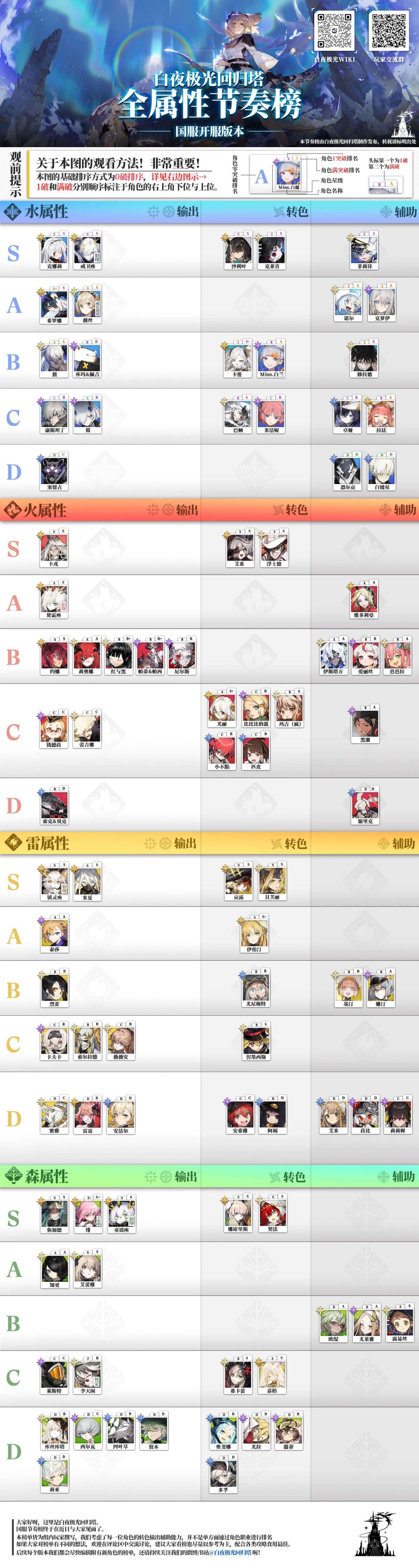观前提示:开服节奏榜以外服数据为标准,配合国服现有角色建立,不排除国服有魔改数据的可能,仅供参考考虑强度时默认满武器(再提醒一下,不要忽视了升级武器,不一定要10级,但是武器的提升真的是非常巨大的)节奏榜仅供参考,本身目标是给一些不熟悉光灵的玩家一个大致的方向,如有不同意见还希望大家和谐讨论 攻略来自于: