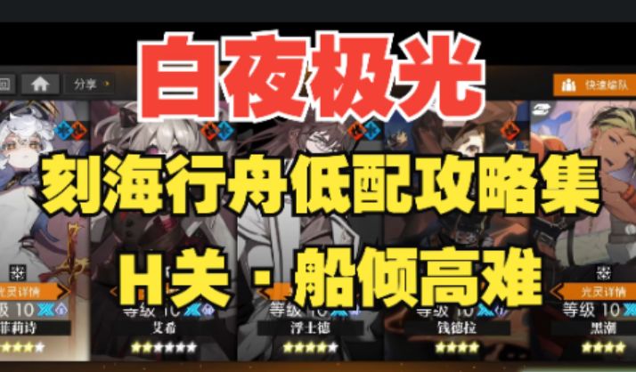虽然料想到很少会有人看这期的攻略,但想了想,还是得做一期,万一能帮到人呢! 大家好,我是侦探! 这是【刻海行舟·H关(船倾)】的 【平民低配】 攻略合集 所有关卡都会在taptap陆续更新,会尽可能给出更加平民化/更低突破/更低练度的轻松解法。 白夜极光没办法按轴一步一步来,所以思路最重要,大家只要按思路来,就能轻松过关~ 如果侦探的攻略对大家有帮助,还请大家点赞支持呀!#我的游戏日记Vol.4#攻略