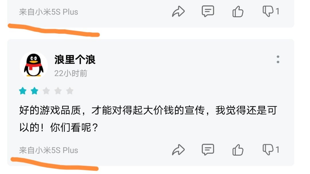 这游戏没玩过,想看看评论区的反馈如何! 结果看到 大家注意好评区和差评区的手机型号! 😄😄😄