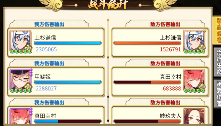 作为一名先锋服老玩家,玩了差不多一个多月了,毕竟在先锋服氪了万把块,自认为对于战姬强度这块的理解也算是很深把。所以就准备给兄弟们整波福利,出波强度榜,跟战姬前、中、后期阵容推荐,希望能对兄弟们有所帮助。先整一波版本强势战姬的伤害图:1.图一是刚获取甲斐姬的时候,练度不是很高,但是伤害输出已经不输于上杉谦信了,可想而知练度起来,甲斐姬跟上杉谦信切后的暴力场面了。(流派优先选择切后)2.图二也是
