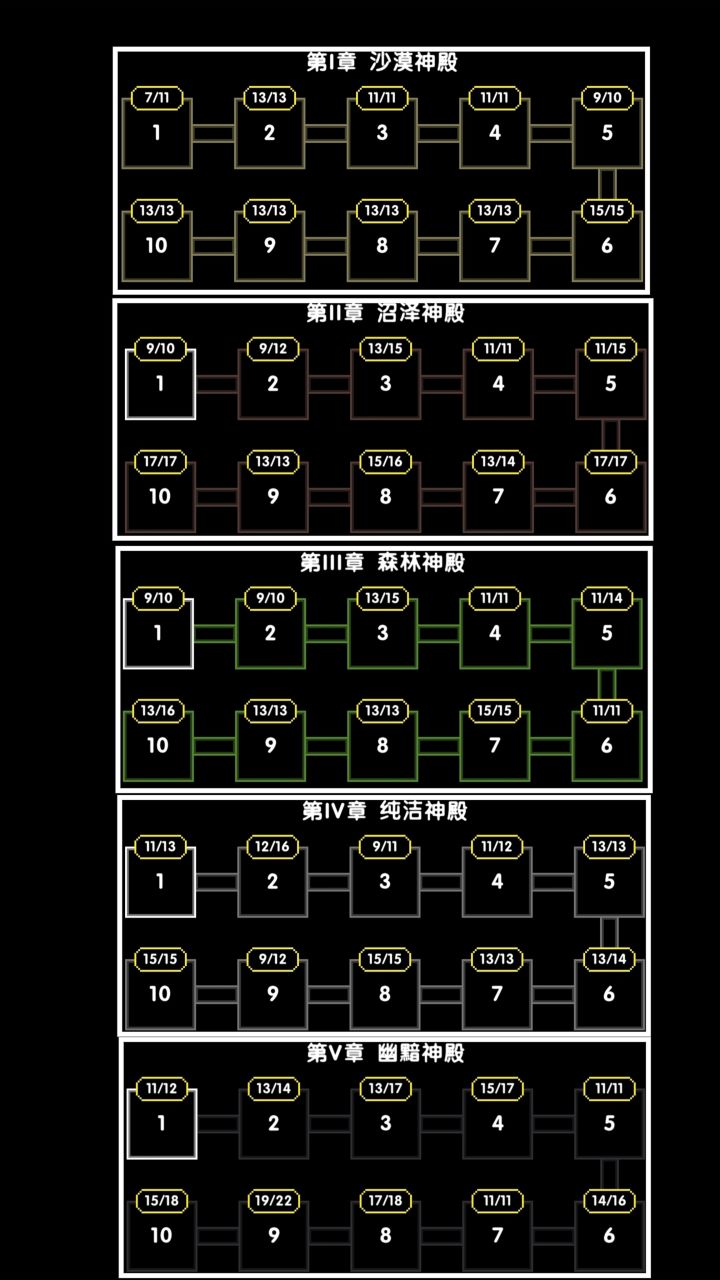 ◤这个游戏的玩法十分新颖,玩家需要控制猫咪,利用猫咪控制时间的能力躲避守卫,并吃到神庙中祭祀用的小鱼干,最终回到最开始的位置传送到下一个场景完成关卡。一共有0~5一共六个章节,每个章节都是不同的神殿,有不同的场景和不同的守卫。游戏中时间的概念用回合展示,玩家可以利用控制时间的能力,选择一个回合进行移动,但由于能力有限,只能移动到距自己当前位置一格远的地方。场景中会出现神庙守卫,它的观测和捕捉范围会有特殊标记,猫咪站在橙色区域会被守卫发现,守卫会开始追击,当猫咪站到红色区域,则会被守卫抓住。关卡内会提供一定数量的回合,在上方显示,玩家必须要在最后一个回合之前吃到小鱼干,并在最后一个回合站到最初位置的传送门上,使用过的回合会有高亮显示,移动到各个的回合可以查看这个回合猫咪和守卫的位置和状况。每个关卡结束后还会以凡人视角——也就是正常的时间顺序,依次查看猫咪所在的位置,还真有点戏耍守卫的感觉(虽然前面不知道被抓住了多少次)。