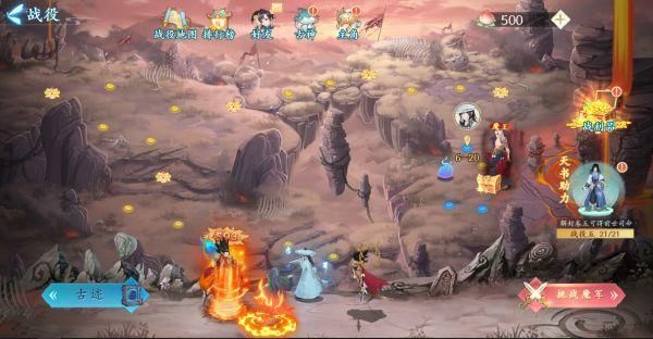 一、战役玩法1.等级满足要求时,可以点击挑战魔军按钮2.在阵容界面中,可以更换上阵的主角和古神,最多可以出战6个单位3.战斗胜利后,可以看到获得的奖励二、古迹玩法1.通关战役后,会解锁相应的古迹关卡,点击挑战按钮可以进行挑战2.通关后的古迹,可以快速扫荡,消耗精力,获得该古迹的掉落奖励,每关古迹每天可以扫荡3次。提升司命星级,可以提高每天扫荡次数3.挑战古迹胜利时如果满足禁制要求,则