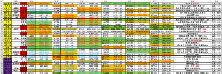 角色的属性取决于角色等级+珍宝等级,400级以后角色需要的经验直线上升且戏曲大师无法加入其他流派,紫色以下的角色停留在400级反而更好,正确的培养角色能节约不少资源和时间。角色是固定的,一共64个,不同品质的角色升级所需的经验相同,所以培养品质越高的成长越高的角色收益越高,以下是部分角色的成长及技能金色角色和金色以下的特技角色都可以练到400400以后值得练的就不多,这里推荐几个江南才子(