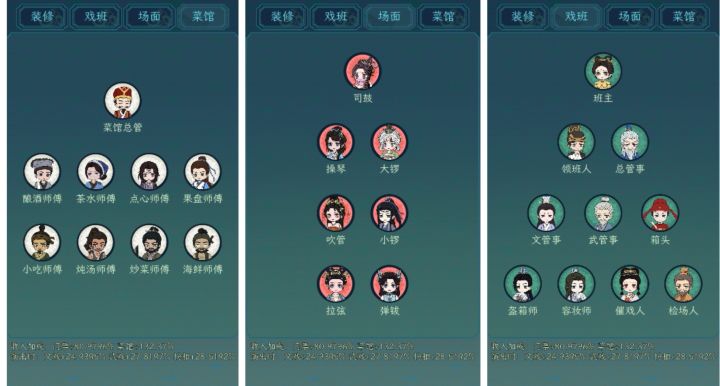 一.创档——开局选角:『江南才子』招募费360万,百级突破后可解锁扮相要求(比较建议)。『游者』招募费36万,可担任戏园班主,但会卡突破。『司乐』招募费126万,可担任戏园场面。『京城名厨』招募费90万,可担任菜馆总管。(随着版本更新招募费可能会变化)选好继承人后跟着指引过新手教程。到比赛这里教程中断,需要把1图过完才会继续。『做菜』——解锁『菜馆』。『种植』——『菜园』,解锁