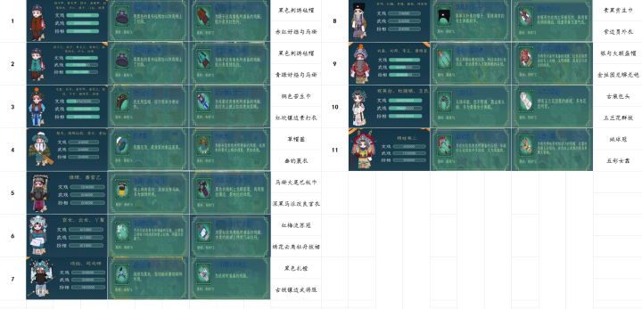 追求长剧本高收益的可以吃长剧本的专属,盯着一个剧本薅!!!基本都有专属,戏服目前是110/126。我很多没给衣服,剩下的可以看着给,现在剧本很多衣服都适配一堆人。霸王别姬(论坛搜霸王别姬伯仁有配图),项羽虞姬高属性就行。锁麟囊2个妹子主角占比高,其余都差不多占比,得上很多人。如果人不够还是建议霸王别姬,毕竟时间短,效率高。1.6又更了个长剧本拿高登,20伶人36分钟,武生终于有用武之地,具