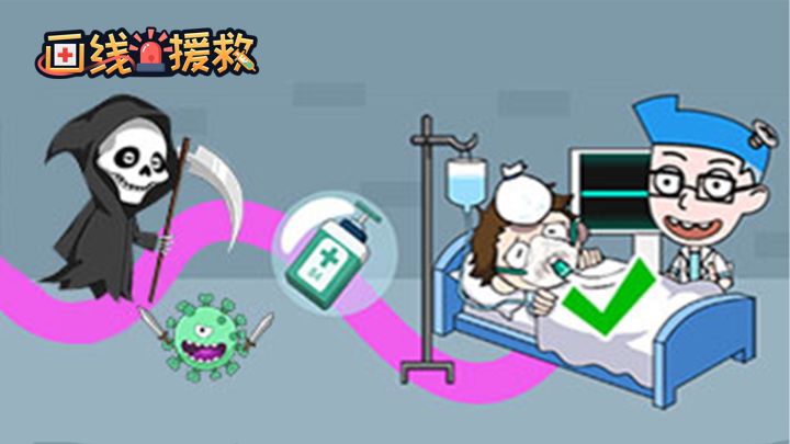 《画线援救》是一款画线救援类的休闲益智小游戏,玩家只需要扮演医生的角色,合理设计线路避开死神和病毒的侵袭,带上药丸去救援病人即可。该游戏有简约q萌的游戏画面,充满挑战的画线闯关玩法,十分有趣。每个关卡中的物品陈设环境,死神和病毒,包括药丸的位置分布都是不同的。同时,游戏中的关卡越高难度越大,玩家在画线的过程中可要小心扮演好医生的角色,还要注意自己不要被病毒感染哦,毕竟救死扶伤可是医生的职责,生命不容轻视。