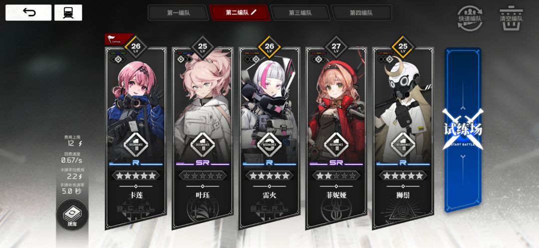 本人菜鸡非酋练度低在这提供一个平民阵容思路,有什么意见可以在下方评论区交流,不喜勿喷。 1.卡莲:全女队奶,大招能全奶有优秀的检索奶牌,小奶牌费用低可以放心使用不会抢占过多费用,练度低的可以用卡莲队长提供稳定群奶应付前期 2.叶珏:大家都有的雷队角色不多介绍 3.雷火:最强过牌,大概吧反正我现有的角色里没有什么比她过牌厉害,爆炸物特殊机制可以一波快速补充手牌完成循环 4.菲妮娅:初始雷系角色大招能