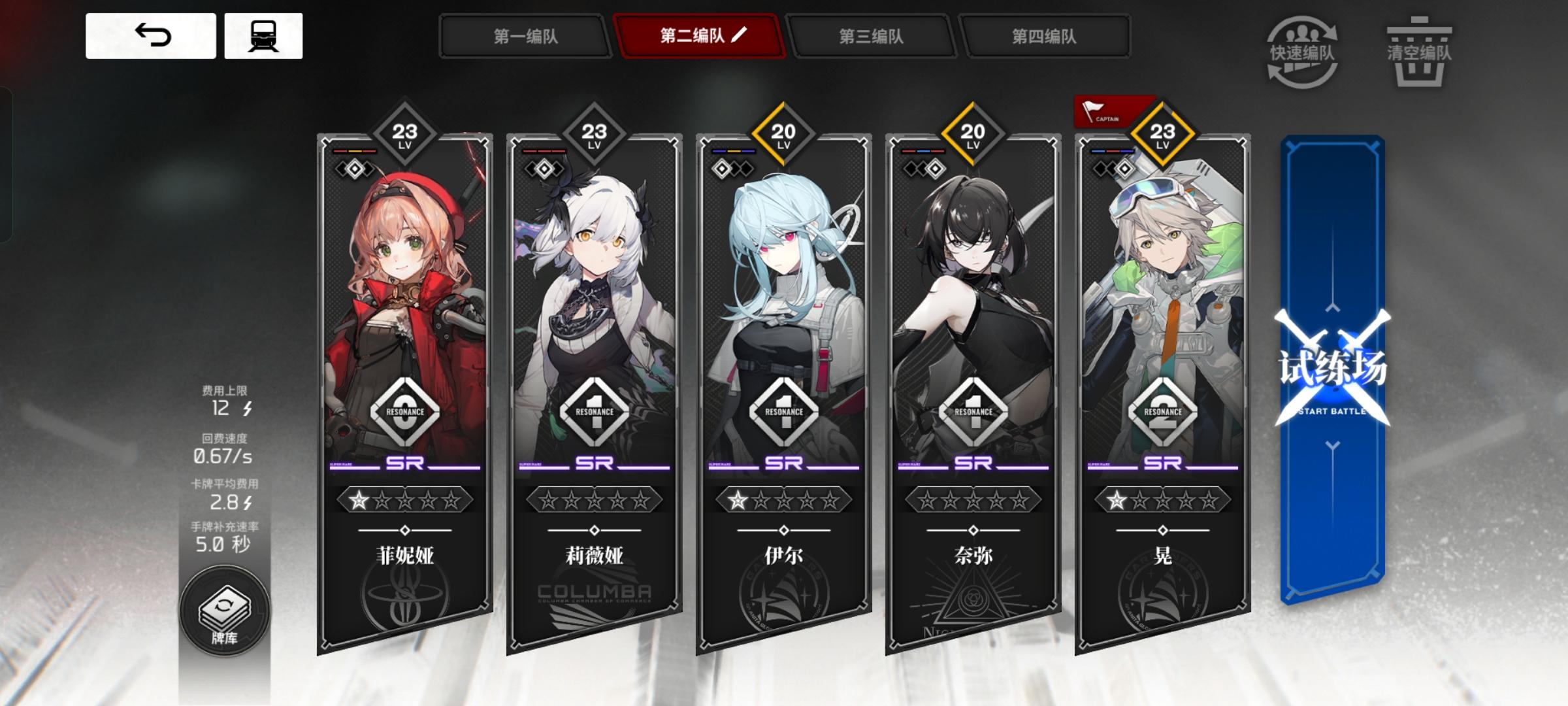 开荒一路用到40级的队伍,靠周期性的冰冻让夏洛蒂和卡塔斯吃到冰结/冰封的50/100增伤,苍叶需要二觉,开局低费红做苍叶任务,中期卡塔斯黄牌补费、红牌斩裂眩晕配合闻笙支撑夏洛蒂空档期,苍叶和闻笙大招配合夏洛蒂爆发,费用很平滑,各种场合资源运转都没什么问题,但因为缺少生存,40级以后的副本就没有用武之地了。是个好玩的构筑即使后面用不了了我也很满意,但我不一定会继续玩了,所以留个贴给未来想换换口味的朋