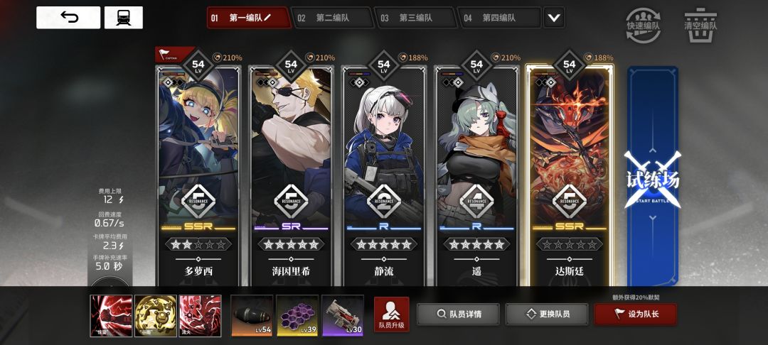 为了演示紫卡队的出牌思路录制的视频,跨五级击杀应该还算有些含金量吧。 好多朋友说自己的紫卡队高费卡手,前排暴毙,因此得到结论——紫卡队需要亚莉奈二觉才能玩 二觉亚莉奈确实可以极大提升紫卡队的强度,但紫卡队并非没有二觉亚莉奈就玩不了,这个视频将展示全员零觉醒的紫卡队的强度也足够完成越级战斗。 为尽量避免装备影响,大部分装备尽量选择了“战胜一波敌人”类等难以触发的词条。 队伍内角色全部零觉醒,装备全部
