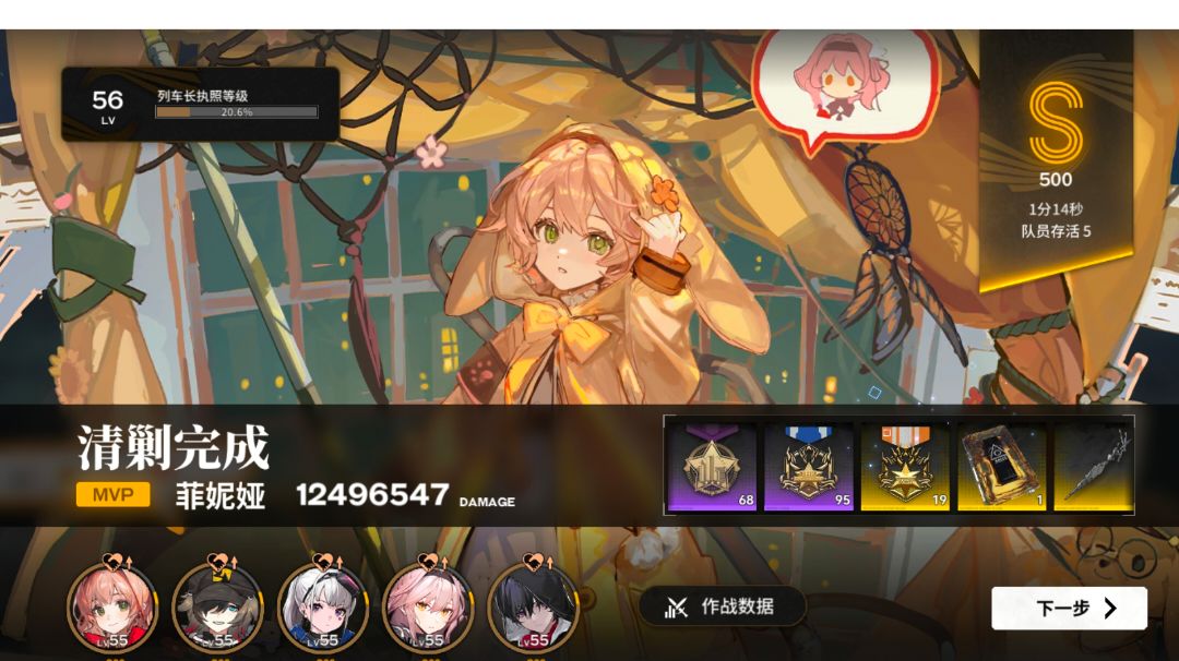 本期难点个人觉得在下半,不过说真的虎桑是真喜欢给BOSS上全抗性,逼得人用数值硬打,就很没意思,这期的限时10分钟可能是虎桑仅存的温柔了 甘雅、无名(我的是二觉,不过我感觉零觉也行,10分钟肯定能打完BOSS)带练功装备(如果只有一套给无名),水静(零觉即可)、里奈、菲尼亚带抽牌的装备,词条以生命、回血为主并带一条无敌词条(打了几次,里奈的大招挡了BOSS的小技能,没能及时消掉印记,被BOSS随后