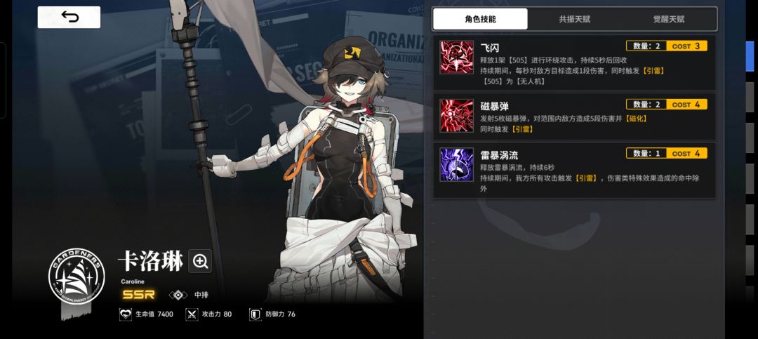 其他配队: 自选推荐?配队攻略?看这一篇就够了! - TapTap 其实引雷队的思路非常的简单粗暴,卡洛琳队长技需要六张【引雷】牌激活,那就选出有【引雷】词条的角色就好。 队长位:SSR卡洛琳,队长技能可以触发大量雷击,二振二觉均有大提升。 余下四个位置的引雷角色我已列出,涵盖了抽牌回费和控制,常规引雷队这样搭配即可,但随之而来的问题就是没有前排和缺乏治疗。 在有二觉卡洛琳解锁队长引雷增益的情况下