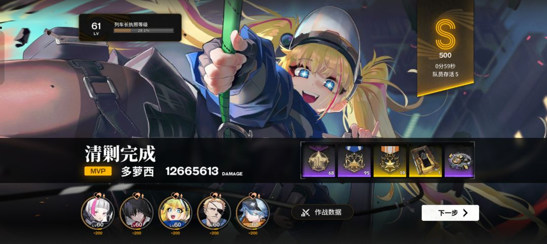 条件:新手池抽到那由他或卡洛琳其中之一,第三天自选没有的那个。 配队:菲妮娅(小红帽),那由他,卡洛琳,冯里奈,卡莱雅/静流 前期:主线剧情金子小姐需要熟悉一下弃牌雷的输出手法,装备均升二十级(品质高就带,不论品质都升),基本稳过。 做完淘金主线就先停下,不做新剧情(因为我没注意关卡难度) 中期:优先升级电力,建车厢,每日正常跑商。回头把能打的铁安局关卡都打了,打不过就走。 在七号港刷四把内脏采集