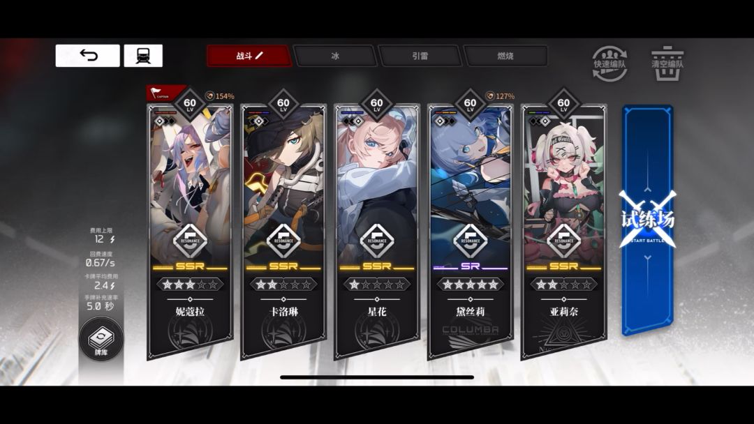 图为我练满的角色,全都用过,没一点云。 先点评弃牌雷:性价比最高,但大后期不如飞斧。和速转火队并列第二。(一分钟前强于速转火) 分配队,装备,词条三方面说一下。 一.各种情况配队 以基础配队为:那由他,卡莱雅,菲妮娅,卡洛琳,冯里奈举例。 1.极限高压求稳(50级左右auto污染十骨龙的时候,现在没必要了。)会上朱利安和镜流下那由他和卡莱雅。朱利安镜流冯里奈三位能保证每个过牌循环,你能有25到30