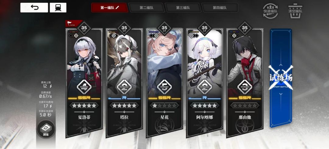 前提:满命夏洛蒂以夏洛蒂为核心组建现阶段阵容首先说下角色构成:夏洛蒂(满命,振4)星华(振5)那由他塔拉阿尔卡娜 先说下为什么这么构建: 1.增加费用回复夏洛蒂满命最大的提升是什么,伤害翻倍,但随之而来的是费用翻倍,所以这是很多满命夏洛蒂卡手的重要原因然后我们来盘一盘怎么增加费用,增加费用主要有三种方式:(1)辅助装备增加费用辅助装备增加费用用有三种,一种直接每秒增加费用,一种是击杀增加费用,一种
