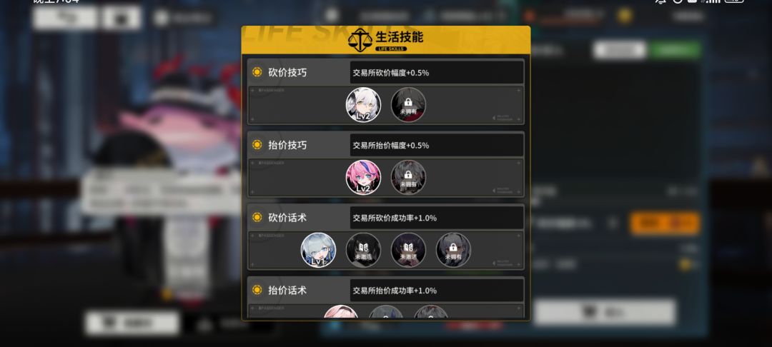 跳鼠,静流:便当恢复疲劳值+3(日常回体力的差距) 卡莱雅:急行弹丸+1(列车加速用) 波克士:列车行驶疲劳-1(训练营获得) 遥:列车载货上限+4(训练营获得) 其他关于砍价抬价之类的技能可在交易所的生活技能总览查看。就在你的贸易等级旁边。可以按需共振。训练营就在你的编队界面可以进入。