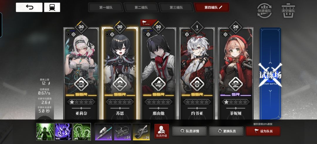 应该是中后期队伍 开荒紫卡的很多过渡装备能用 我自己材料不够 还没拉满 但机制是顺畅的 人物:卡神是绝对核心,高频大招 伤害担当 3振的斩钢可以根据情况关闭 瓦伦丁125觉都厉害 越高越好 卡来雅无所谓 酒保最好2觉 星花万能辅助 装备: 刚需酒保带普攻点火武器 卡神ur代码 卡来雅无人机持续时间挂件 其他位置无脑找回费 基本之前洗的紫卡队词条都能用 提升过程 欠费~关斩钢顺畅~开斩钢顺畅