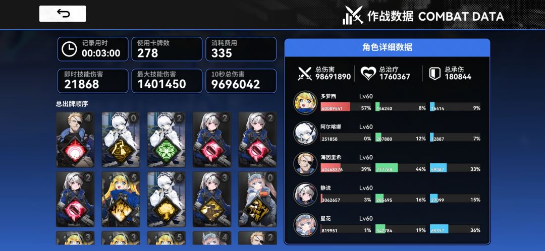 因为录屏太卡所以改成录像 平均时长为57s-58s 核心命座: 2星妮蔻拉 1星卡洛琳 核心装备: 妮蔻拉:二级相变(专武) 苔妮:月落宝玺(星花衍生不卡手) 星花:空间切线(开局抽大) 错峰出行(生存) 自律:23514 玩法要点:苔妮迅速过队长技,蓝卡高于红卡开护盾保生存,全员大招紫黄不卡手