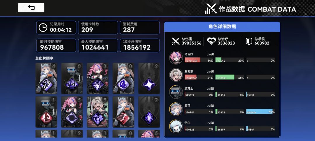 思路来源于b站一位叫Apha1博主的新星队 回费手段引魔手杖x1,内脏采集器x2,四翼妖龙x2,只有一条队长技回费词条 我只有一个引魔手杖(还是今天才出的),再拿一个换掉内脏采集器,留两个空位给暗夜寻星就是后续的装备变更,四翼妖龙召唤的无人机可以被伊尔收回,使伊尔的黄卡不再卡手或浪费,最差也能回两费。可以看到我一波无人机回收存在立马12费爆费的情况 角色替换:后续费用够的话闻笙和女主轮换上场,女主
