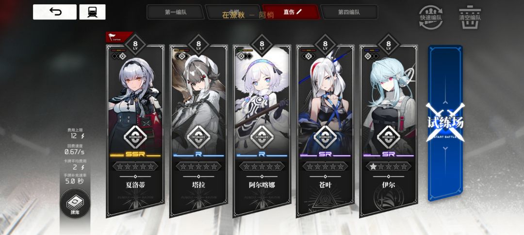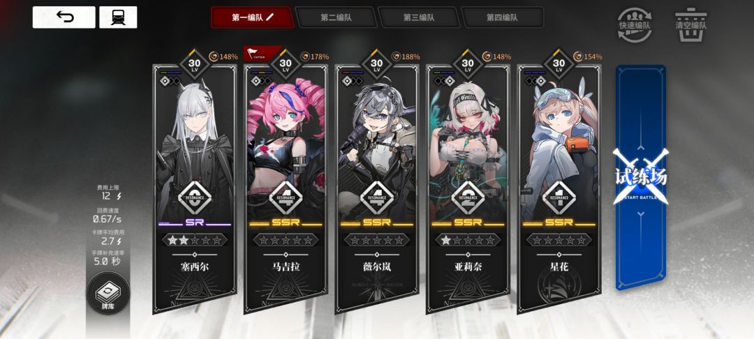 塔拉:红卡专拐(增伤30%) 阿尔喀娜:回能+奶(在难度关卡奶量略显不足) 苍叶:叠攻击力+快速过牌 伊尔:80%减伤+回能+50%概率冻结(可以在夏洛蒂释放大招前赌一波冻结,可增伤50%) 夏洛蒂:负责快速打出三次『灾月』后释放队长技(爆发来源) 阵容劣势:夏洛蒂是唯一的前排位和输出来源,没有盾卫和抬血型奶位容易暴毙!#雷索纳斯
