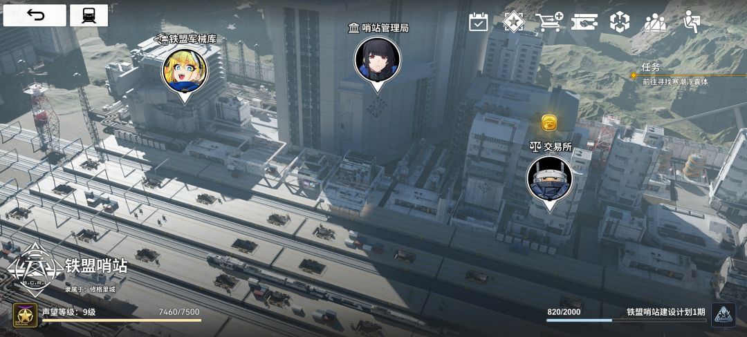 目前在刷铁盟哨站的建设度,就快拉满了(1600/2000) 靠物资运输提升建设度不太合算,关键是建设度给的太少了,还费钱(铁盟币) 还是打怪(打作战计划里的威胁等级3)实在,虽然一局只有60点建设度,但架不住材料掉的蛮多的,而且几率掉落紫装,进度还是阔以的。 有亚莉奈的小伙伴,最好优先把铁盟哨站的建设度拉到1600,领那个SSR挂件,固定词条加全队回复的,能使其他队员的整体生存率🆙