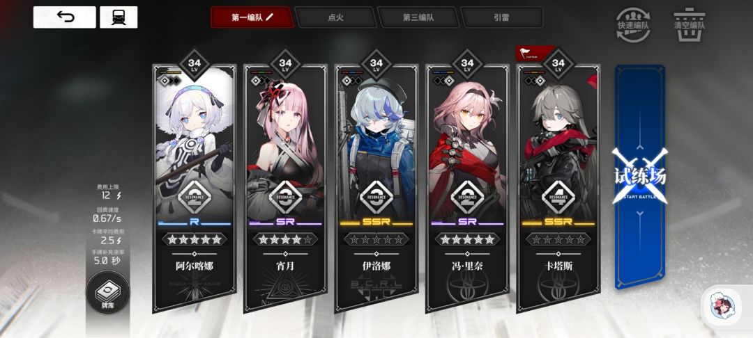 给大家分享自己玩的很爽的配队。 三核流,优点:伤害稳定,宵月,卡塔斯输出都在线,伊洛娜耗费低,留卡到第三轮直接拉满。缺点:生存有点不稳定,点数浪费。 角色简单介绍: 伊洛娜:除了得意技4点,其他全是两点,开共振还能减,低消耗高输出,纯输出角色,还可以开隐身加强生存能力。(玩狙的伤害就是高) 卡塔斯:3点红卡,当队长放一张就可以-12s大招CD,还有高达5点回费,共振4可以放大有几率得到一张5点高输