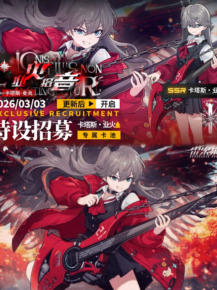 大的来了家人们!雷索纳斯SSR角色「卡塔斯·业火」专属卡池又开了,消息一出,直接冲上热搜,引起热议 这次卡池叫“业火拾音”,一直开到3月13号中午12点,期间抽到卡塔斯·业火的概率大幅提升。看红夹克配电吉他,又飒又酷,活脱脱一个摇滚少女,颜值直接戳中不少玩家的审美点。 官方还贴心延长了「“业火拾音”乘员系列礼包」的售卖时间,给想氪礼包的玩家多留了点考虑时间。 结果却引发大量玩家不满,