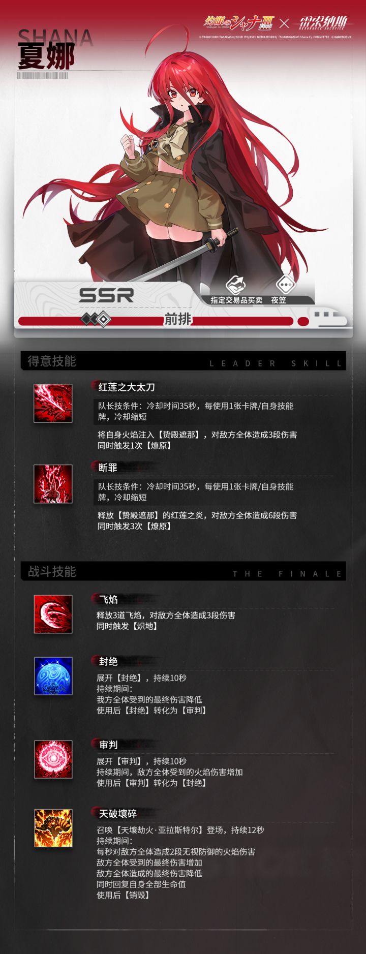#雷索纳斯 #灼眼的夏娜 ——【无垠号档案】 ——夏娜 Shana“我是“天壤劫火”亚拉斯特尔的火雾战士——炎发灼眼的讨伐者,夏娜。”日文CV:钉宫理惠————————【下载方式】✦官方下载:http://t.cn/A6QzFLmz✦TapTap下载:http://t.cn/A6loqUxC客服邮箱:resonance@gameduchy.com【关注我们】✦官方交流1群