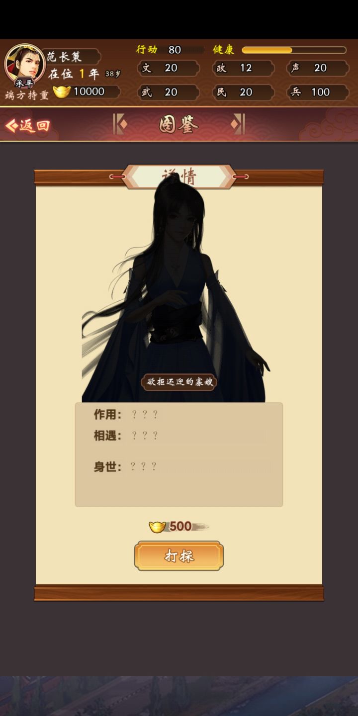 在图鉴中,未曾结识的妃子将会以黑色头像表现,仅保留其头衔与称号,可以通过打探逐步了解这些妃子背后的故事,并找到寻访的契机。