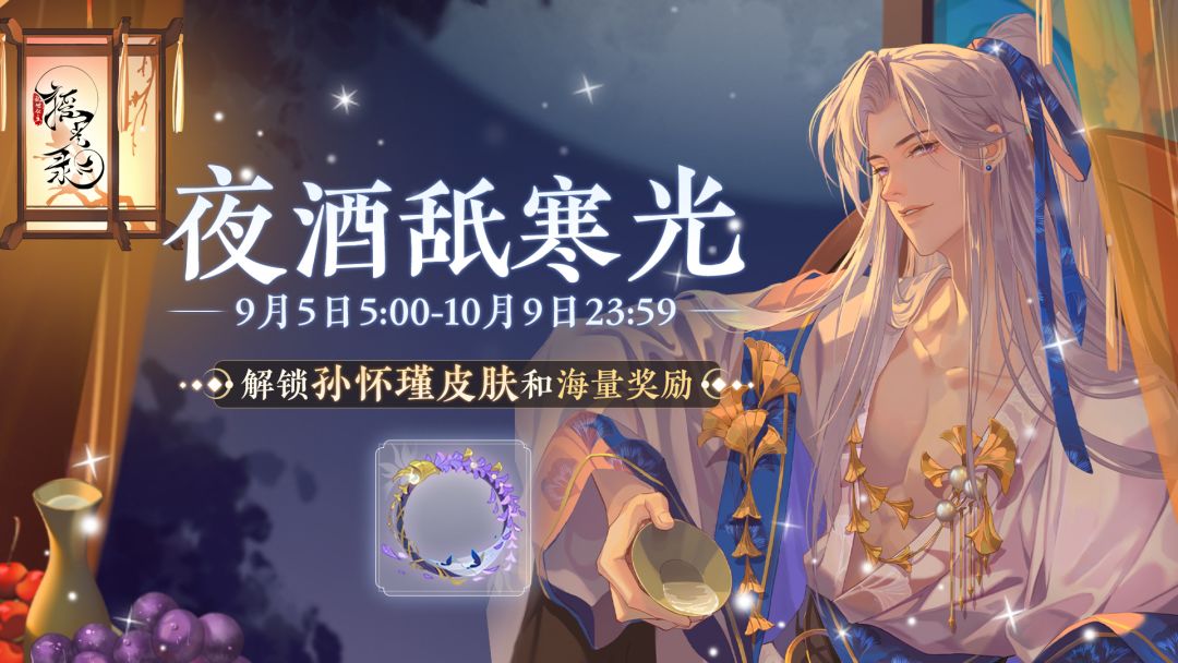 夜阑酒醒,明月映盏,公主可愿前来一叙? 9月5日[起居注]-[夜酒舐寒光]即将限时开启。 ♦活动时间: 9月5日5:00-10月9日23:59 ♦起居注规则介绍: 1.起居注奖励分为玉简、金册两种,每期起居注开启时会默认为公主开启[玉简]。 2.起居注持续时间内,公主可通过完成起居注中的任务获取[夜酒集]提升起居注等级,领取对应等级奖励,购买[金册有礼]或[金册加封]后可激活[金册]奖励。 3.起