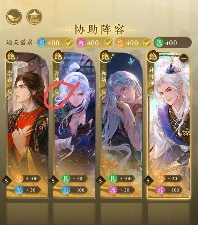 这个活动到现在已经完成大概25个号的全结局代肝了,大概完成思路如下 零基础(没有任何卡也没有过任何章节) 注意:2级4卡 决战最低四项数值是352 3级4卡 决战最低四项数值是328 4级4卡 决战最低四项数值是304 5级4卡 决战最低四项数值是280 第一天需要做的是刷卡不要外出,全部都朝政体力不够就休息,不要外出!!!卡的话需要刷出青魂、和珞、孙怀瑾、李睿(并且只给这四个卡升级),正常