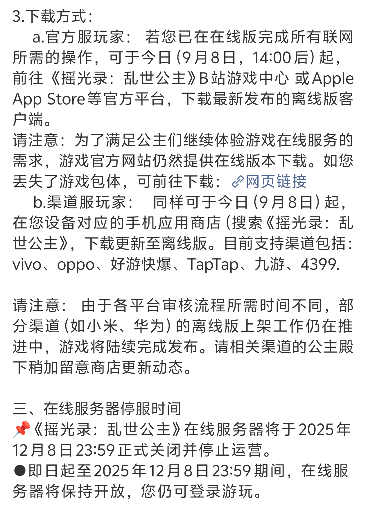 国风女性向手游《摇光录:乱世公主》宣布即将停更