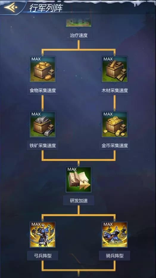 一、兵种的种类、区别及特点(不排除兵种装备加成的情况下) 步兵:攻击较较低、防御高、生命高、速度中等,承载较高 骑兵:攻击较较高、防御中等、生命低、速度快,承载低 弓兵:攻击较较高、防御低、生命低、速度中等,承载较高 器械:攻击较高、防御高、生命高、速度慢,承载高 PS:虽然器械兵初始攻击、生命、防御都高,但是该兵种无装备、英雄等的额外加成。所以不作为主要兵种培养,更适合去搬运、采集、掠夺资源 二