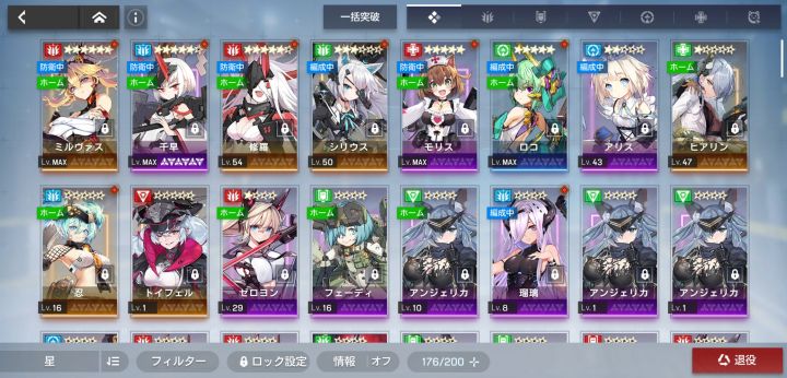 就刷3-10和3-8,主要刷的是3-10,但是不掉满级狗粮啊!按理说应该刷3-8,但国服当时调整过掉率,后来大家就都去刷3-10了。也就平均30次1个,跟国服那会儿刷修罗可差了些。顺带一提,公测九天后会发公测奖励,离谱😂目前阵容如下,接下来会养个50洛可和50木奶ps:想要爱丽丝😂