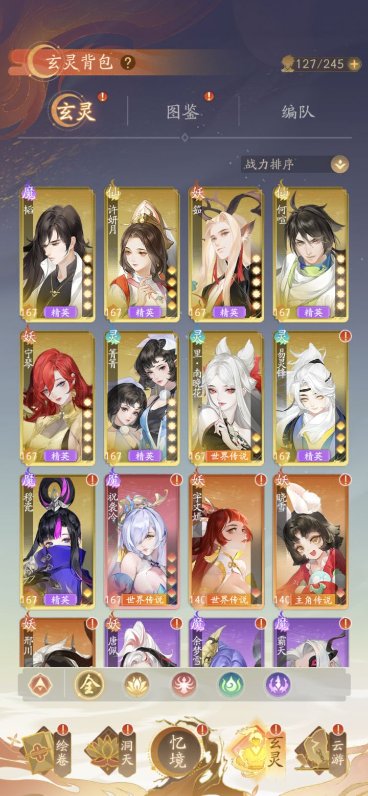 游戏正式服运营模式大概率滚服现在说说武将(这游戏叫的玄灵),分为四个阵容分别是,仙,灵,魔,妖,其中每个角色又分有不同的职业和属性。由于我卡第二关了就只讲讲我发现的,羁绊系统加属性和等级,不带技能效果。这是先阶段所知的信息至于战斗有没有跳过,我不清楚,因为现阶段我卡第二章了。地图方面我点着很难受不知道为什么,可能是我眼睛不好点,不好点路面游戏内所有氪金内容。注意 注意 注意 这东西是随你
