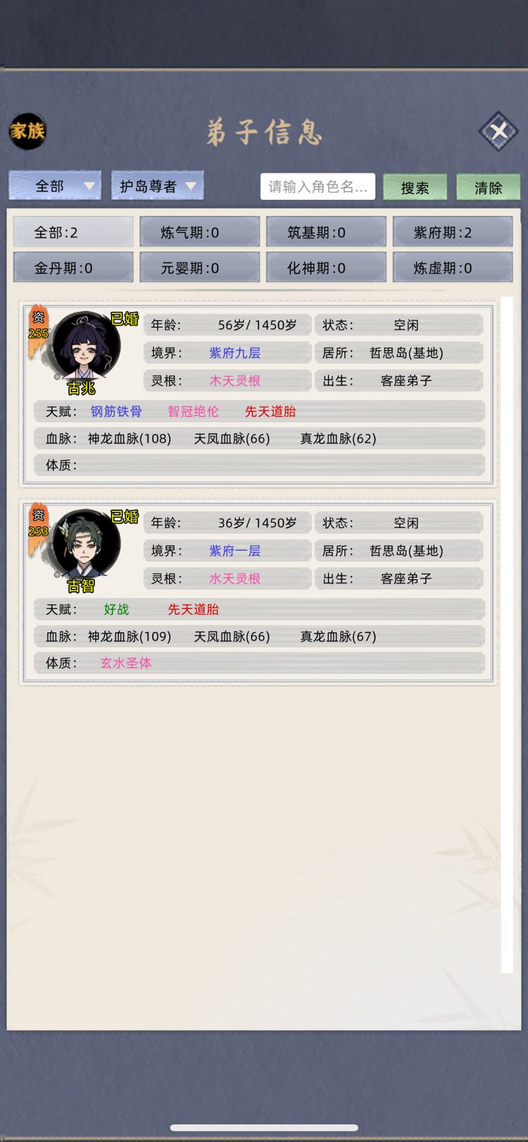 “老祖,5千年将至,是时候举行飞升大典了。” 新版本名人不会主动突破炼虚,都中了-120%突破率 所以这版本助力名人飞升很容易 宝物带,问道塔(初始大爱飞升失败,估计要300资质才能飞升),登仙台 家族模式名人的遗传价值主要是红色体质,然后是放养偶尔抓来没收储物袋(名人储物袋资源很富)最后助力其飞升爆出灵玉,丹药图纸 补充一下抓名人的方式,找到名人的岛屿,查看家族等级,自己的家族等级必须比名人的