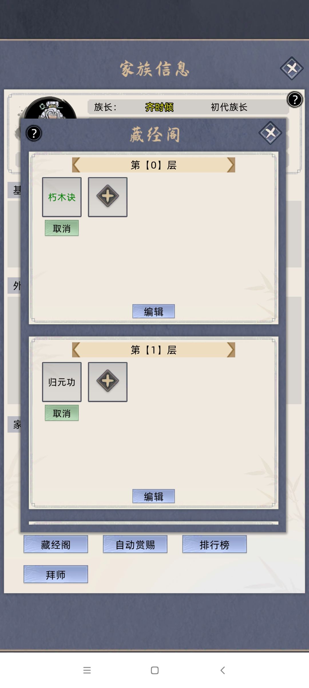 现在版本的功法的核心思路必须是耗蓝量低,不然低境界的弟子用高阶功法两三回合就没有蓝了,本身就天赋拉胯的情况下没有功法加成是很容易死的。就比如名人荒天帝元婴九重被我用元婴一阶的原始人老祖干翻。 藏经阁 一层朽木不用设置 二层归元功,练气七重到大圆满 三层凝元功,筑基一到三 四层九转神道,筑基六到圆满 五层玄武神诀,紫府一到大圆满 六层,乙木心法,金丹一重到大圆满 七层,推荐天青,元婴一重到三重(不太